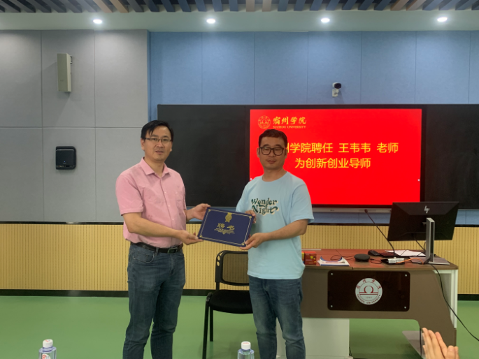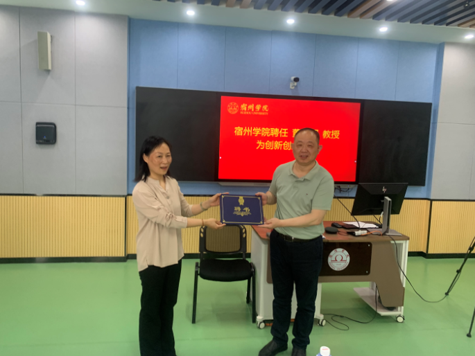 王红艳和教务处副处长刘超向三位专家颁发了“宿州学院创新创业导师”聘书。三位专家表示将把自己的教育教学和管理经验服务于宿州学院创新创业教育工作,为推进学院高水平本科院校建设增添力量。