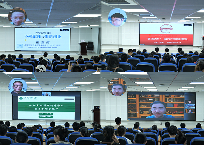 在课程培训环节,学院邀请了浙江财经大学创业学院院长童夏雨教授、合肥工业大学凌训延老师、安徽农业大学王韦韦老师、我院优秀毕业校友孙韬,担任本次精英班讲座人。童夏雨教授以《大变局中的不确定性与创新创业》为题,从国际力量、世界格局、科技革命、全球政治科技中心转移、现代化发展模式等多个维度深入剖析了时代巨变的宏观背景,并具体指导同学们为应对大变局的不确定性,应从敢闯的意识、会创的能力、行动的方法三方面提升自身综合素质。凌训延老师以《“赛创融合”——助力大创项目建设》为题,从自身创业故事与校友创业案例入手,引导同学们应怀“创业报国”之志,培养卓越本领,锤炼意志品质,成长为国家需要的栋梁之材。王韦韦老师以《依托大创项目提升个人素养和综合能力》为题,深入解析了项目驱动、学做合一、师生共创的要义,具体指导同学们在开展大创项目过程中,如何解题破题,如何寻求研究资源,如何项目与竞赛融合,如何项目孵化。我院2012级国际经济与贸易专业毕业生孙韬以《“优秀校友谈大创”——大创项目对职业发展的潜在影响》为题,与同学们分享了自己学习、读研、工作、创业的故事,着重就大创项目对学习与职业生涯的启示作用和对提升自我学习、自我发展能力的价值等方面谈了体会。