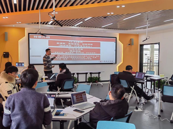 研讨会上,谢强分别以“专创融合升级版课程建设”和“AI赋能的专创融合课程优化”为题,分两场做了课程建设辅导报告。两场报告围绕专创融合与一流课程建设;专创融合课改的内容与逻辑;专创融合课改的目标与可视化成果设计;OBE与PBL教学方法的创新应用;AI基础上的动态教学资源建设;专创融合特色的挖掘与效能呈现等内容次第展开,逐步深入。报告为老师们开展专创融合示范课程建设,提供了时代鲜明的价值导向,行业、职业与专业有效链接的方法论,可视、可评、可用的建设途径,高效、高质建课的辅助工具。