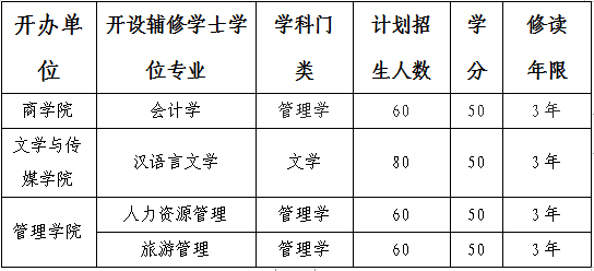 为进一步调动学生学习的积极性,让学有余力的学生能更充分利用学校多学科的教育资源,学到更多的知识,提高竞争能力,适应国家经济建设和社会发展对复合型人才的需求,经二级学院申报,2023年开设以下4个本科专业为辅修学士学位专业。辅修学士学位是指学生攻读本专业(主修专业)学士学位的同时,又跨本科专业大类修读了另外一个本科专业规定的课程,且符合毕业标准并取得学位。为做好辅修学士学位的报名和招生录取工作,现将有关事项通知如下: