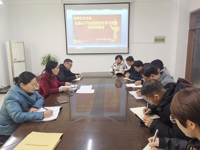 3月19日下午,教务处党支部在逸夫楼A314会议室召开全面从严治党暨党史学习教育动员部署会,会议由教务处党支部书记王红艳主持,教务处全体党员参加会议。