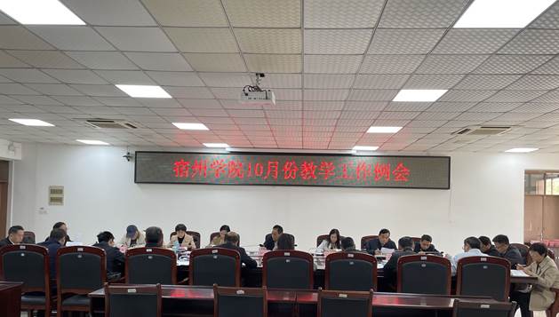 10月11日下午,宿州学院10月份教学工作例会在逸夫楼第一会议室召开,党委委员、副院长李亮、各二级学院院长、发展规划处、教务处相关负责人参加会议,会议由李亮主持。