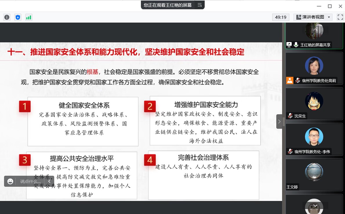 会上,王红艳带领大家学习党的二十大报告。报告全面回顾了过去五年的工作和新时代十年的伟大变革,科学系统谋划了未来5年乃至更长时期党和国家事业发展的目标任务和大政方针,提出一系列新思路、新战略、新举措,描绘擘画未来发展的美好蓝图,鼓舞人心、催人奋进。作为高校教师,我们要牢记总书记的重要嘱托,矢志不渝、笃行不怠,用实际行动持续为全面建设社会主义现代化国家、全面推进中华民族伟大复兴贡献力量。