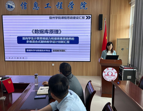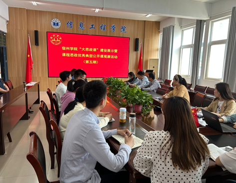 宿州学院第五期“大思政课”建设展示暨课程思政优秀典型公开课观摩活动于5月12日下午在信息工程学院工B315会议室顺利举行。本次活动由宿州学院教务处主办,信息工程学院承办,信息工程学院崔琳、吴孝银、姜飞三位老师进行课程思政优秀典型公开课的讲授。本次活动由信息工程学院副院长潘正高主持。