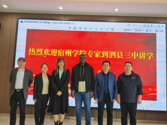 为贯彻落实《安徽省教育厅关于组织实施高校县中托管帮扶项目的通知》有关“实施县中托管帮扶工程”工作部署和省教育厅具体要求,5月10日我校教务处和国际交流合作处组织GNANGOIN YOBOUET THIERRY BIENVENU博士和FARZANEH HARATYAN博士两位外教走进泗县三中校园,走进课堂,开展讲学交流活动。