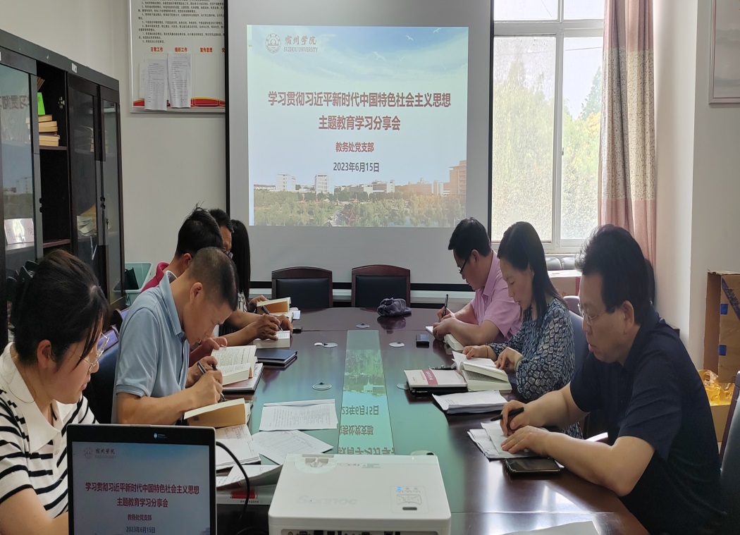 6月15日,教务处党支部在逸夫楼A202会议室召开深入学习贯彻习近平新时代中国特色社会主义思想主题教育学习会。会议由党支部书记王红艳主持,支部全体成员参加会议。