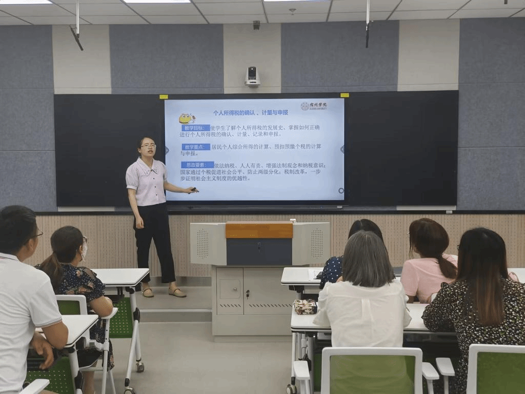 王慧在《税务会计与税务筹划》的课程讲授中,引入偷逃税款的典型案例,生动阐释了依法纳税的重要意义。并通过讲授我国个税的发展史、居民个人综合所得税的计征规则及预扣预缴个税的计算与申报等内容,引导学生更好的理解我国个税改革兼顾公平和效率的目的,加强了学生的思想教育、培养了税收意识和责任感。