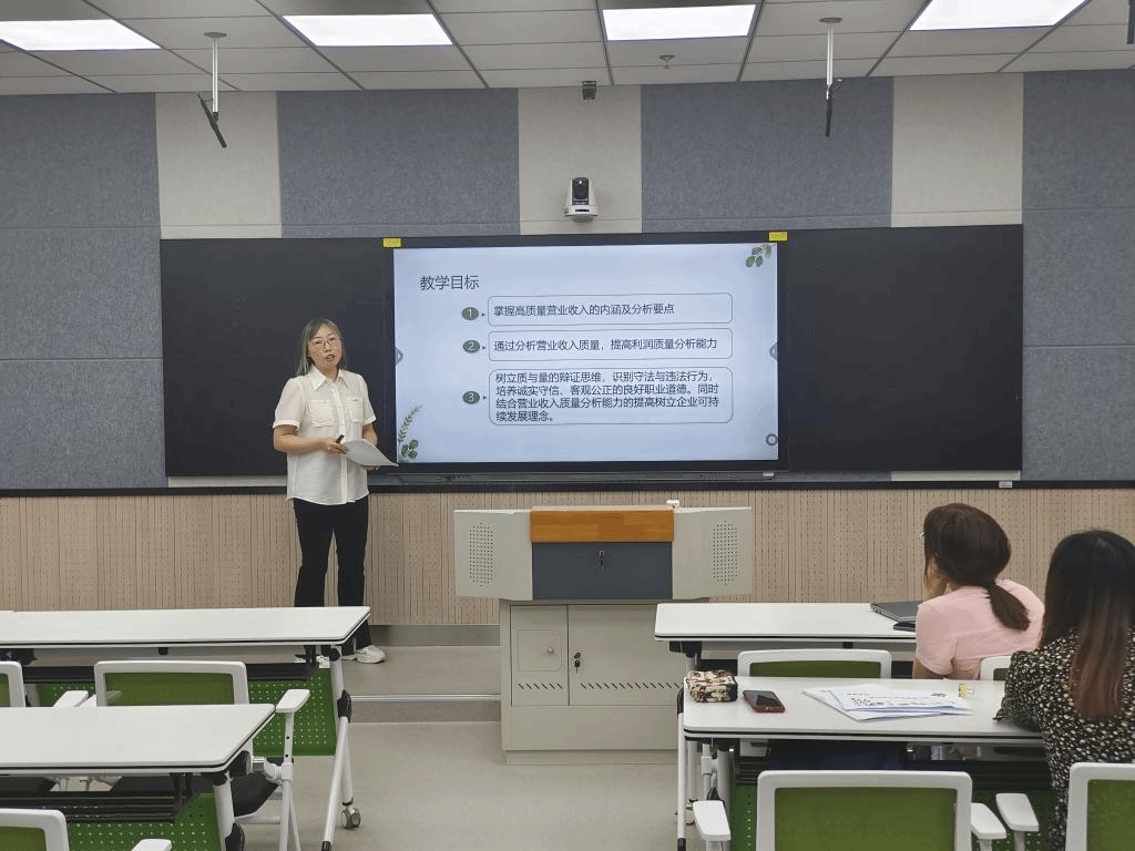 宿州学院第十期“大思政课”建设展示暨思政课程优秀典型公开课观摩活动于6月16日下午在商学院顺利举行。本次活动由教务处主办,商学院承办,商学院吴雪、张亚杰、任琳、王畅、王慧五位老师进行课程思政优秀典型公开课的讲授。活动由商学院教学副院长宁青青主持,商学院青年教师参加了本次活动。