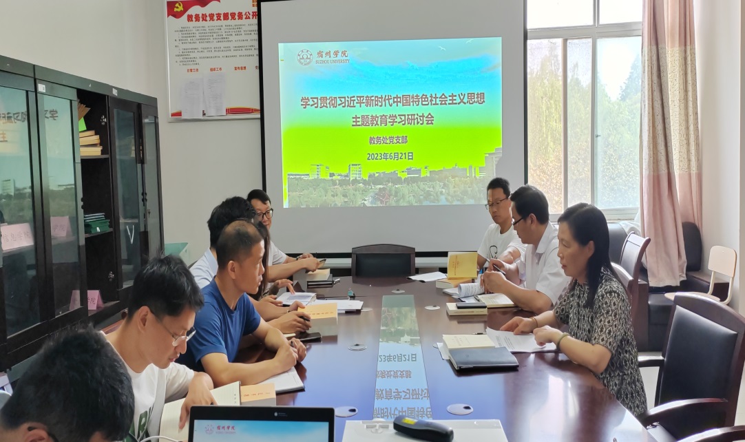 6月21日,教务处党支部在逸夫楼A202会议室召开深入学习贯彻习近平新时代中国特色社会主义思想主题教育学习研讨会。会议由党支部书记王红艳主持,支部全体成员参加会议。