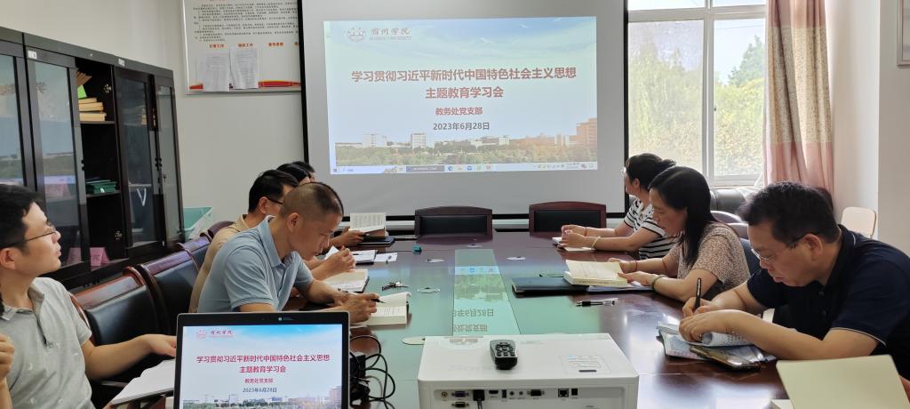 6月28日,教务处党支部在逸夫楼A202会议室召开深入学习贯彻习近平新时代中国特色社会主义思想主题教育学习会。会议由党支部书记王红艳主持,支部全体成员参加会议。