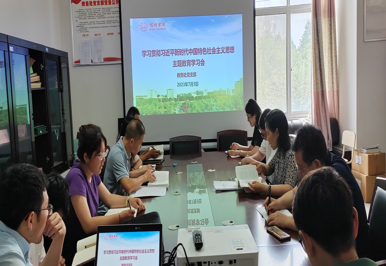 7月3日,教务处党支部在逸夫楼A202会议室召开深入学习贯彻习近平新时代中国特色社会主义思想主题教育学习会。会议由党支部书记王红艳主持,支部全体成员参加会议。