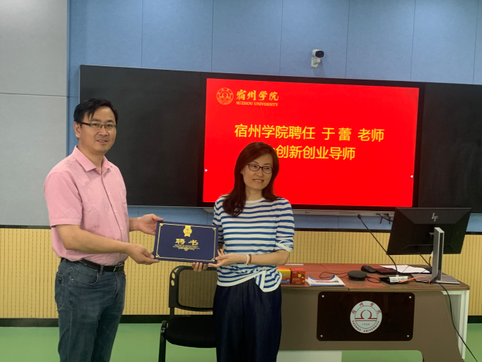 王红艳和教务处副处长刘超向三位专家颁发了“宿州学院创新创业导师”聘书。三位专家表示将把自己的教育教学和管理经验服务于宿州学院创新创业教育工作,为推进学院高水平本科院校建设增添力量。