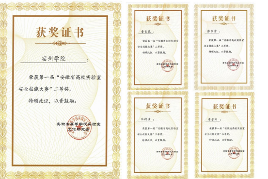 8月17日-20日,第一届安徽省高校实验室安全技能大赛在滁州学院成功举办,我院由机械与电子工程学院实习实训中心主任曹吉花、生物与食品工程学院实习实训中心主任张东京、化学化工学院实习实训中心主任张德谨为队员、教务处副处长唐永刚为领队的的代表队在省内39所高校的队伍中脱颖而出,荣获大赛二等奖。