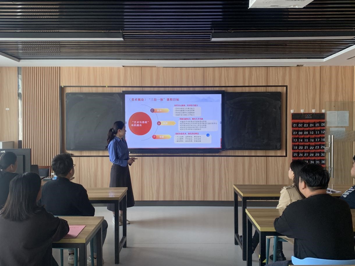 美术与设计学院汪娣老师、刘子琪老师、范砚池老师分别从各自的角度分享了课程思政元素如何融入《文化创意产品设计》、《美术概论》、《书法鉴赏》等课程。在课程设计上,依据政策导向、学科特点、育人需求及学生群体的特点,课程以学生全面发展为中心,以夯实基础理论与思想政治理论同向同行为教学理念;以知识探究、能力建设、价值塑造的“三位一体”为课程目标。通过课内课外、线上线下,将思政元素贯穿于“教与学”的全过程,形成教学闭环,以艺术理论为主线,思政资源有机融合,专业教学与思政教育双线并举,相辅相成,解决从艺术内涵到思政融入的解读和教授问题。