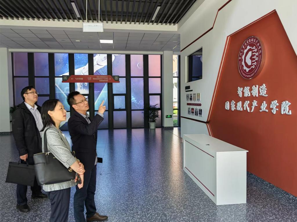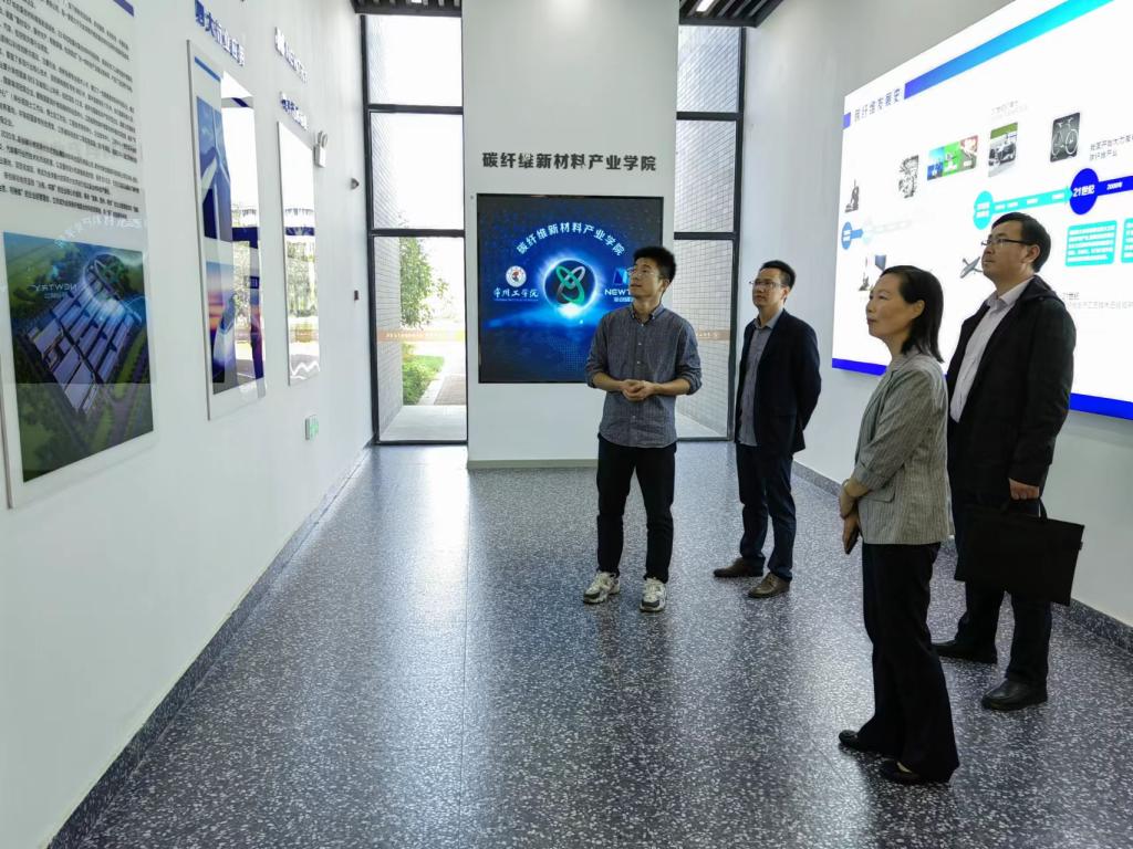 随后,王红艳一行在廖连莹的陪同下,一同参访了常州工学院的智能制造国家现代产业学院、碳纤维新材料产业学院,两个国家级产业学院的技术创新研发中心、创新实验室、校内实训基地。