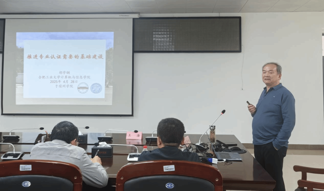 为深入推进我校工程教育专业认证工作,4月28日下午,我校在逸夫楼第一会议室举办了工程教育专业认证专家报告会,邀请教育部工程教育认证专家、安徽省教学名师、合肥工业大学博士生导师胡学钢教授和王浩教授担任主讲,各工科专业负责人、教研室主任、核心课程负责人等三十余人听取了报告。会议由党委常委、副校长王红艳主持。