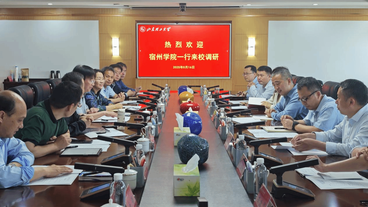 2025 年5月16日下午,校党委副书记、校长闵杰率教务处、信息工程学院、机械与电子工程学院、环境与测绘工程学院、生物与食品工程学院相关负责人赴山东理工大学交流学习工程教育专业认证工作。