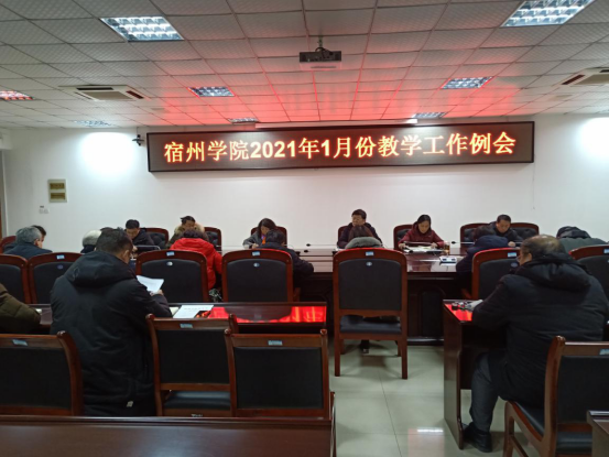 教务处处长王红艳汇报了12月份完成的教学工作,并对2020-2021学年第二学期教学任务设置和课表编排工作、2020级学生转专业、安徽省首届高校教师教学创新大赛宿州学院选拔赛等工作进行了布置。