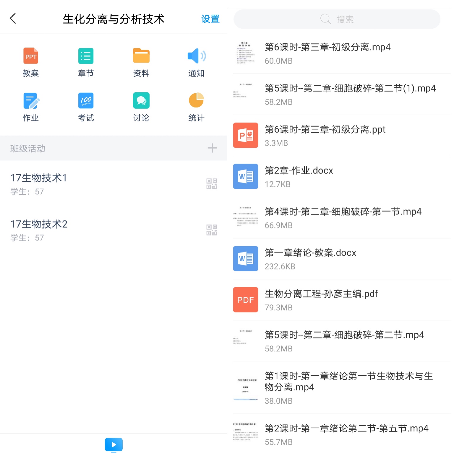 因为本课程网上教学资源不充分,在网上找不到本课程的精品课程和慕课等资源,因此依托学习通建立了《生化分离与分析技术》课程,并把教学大纲、教学进度表和教案等资源上传。同时考虑部分学生网络条件限制及大量用户同步使用超星,造成直播教学困难,因此利用EV软件把教学内容录制成视频并上传。另外,为了提升学生教学效果,在建课的过程中继续查阅和收集优质资源,不断完善网上教学资料如上传了2部电子版参考教材及相关文献。
