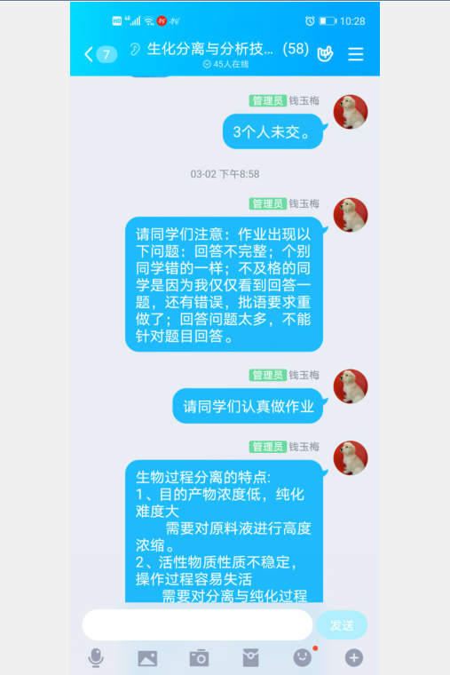 由于全省高校同步使用超星平台进行教学,造成网络卡顿,使学生不能正常使用教学资料,势必会影响课堂教学效果。针对这一现象建立QQ教学群,进行QQ答疑和直播。