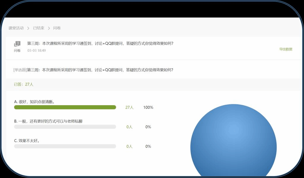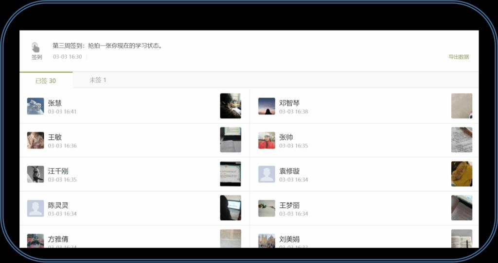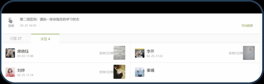 2.签到有方:作为教师,我希望学生无论身处何地,都要有一张安静的书桌。为防止学生缺席线上教学,利用学习通中的“签到”功能让学生拍照签到。特别是要加强前三次的学习签到管理,明确要求,后续教学将事半功倍。