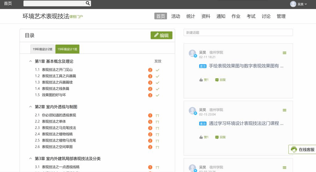 课程章节设置包含:讨论/测试/签到/ppt/录播视频/图文/理论反馈/技法反馈等 |