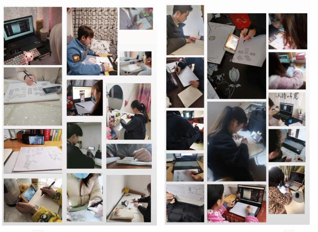 为了确保“停课不停学、教学质量不降低”,美术与设计学院早在一个月前就开始组织在线学习班级,开通班级教学微信群、QQ群,所有任课教师与各教学班对接。所有任课教师提前准备好线上教学资源,包括教学计划、PPT课件、教案以及教学视频、动画等教学资源,同时搜集国家教学资源库、云课堂等优质资源准备开展线上教学,通过在线答疑、网上作业、线上考核等督促检查学生学习与掌握情况。或通过学生在家自学,教师在线辅导和测试等,切实保证教学质量。同时,做好延期开学期间毕业论文(设计)的指导工作,学生按照前期准备在家撰写毕业论文(设计),指导教师定期开展线上指导,切实保证教学质量不降低。开学第一天,全院共有16门次课程通过学习通、钉钉、QQ直播等平台正式在线开课,听课学生达到423人次。